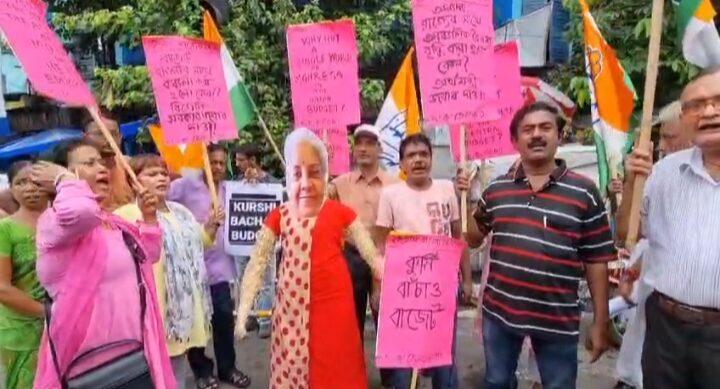জেলা কংগ্রেসের পক্ষ থেকে পুড়িয়ে দেওয়া হলো অর্থমন্ত্রী নির্মলা সীতারমনের কুশপুতুল। ভবানীপুর যদু বাবু বাজারের সামনে অর্থমন্ত্রীর কুশপুতুল দাহ করা হয় এবং দফায় দফায় বিক্ষোভ দেখানো হয়।। আলোচনার কেন্দ্রে বাজেট। এই বাজেট আসলে সাধারণ মানুষের রক্তচোষা বাজেট।