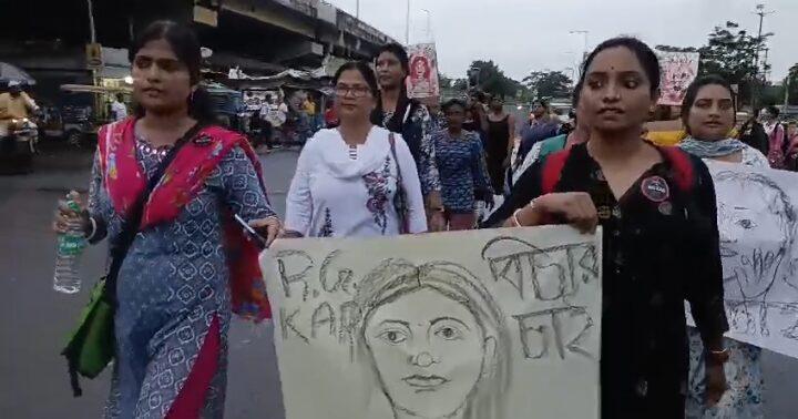 আর জি কর কাণ্ডে মেছেদায় বিশাল সংখ্যক প্রতিবাদীদের মিছিল।