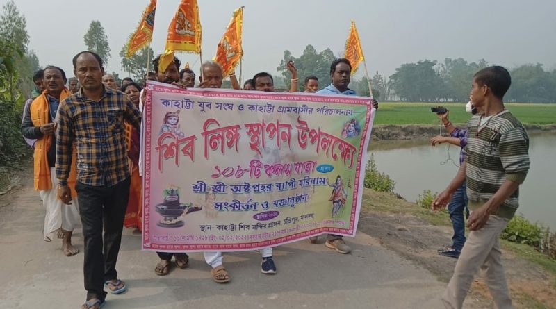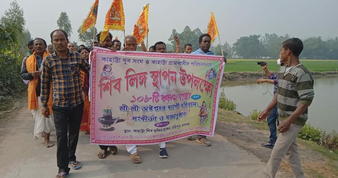 দশ কিলোমিটার পায়ে হেঁটে ১০৮ টি কলশ নিয়ে শুভ উদ্ভোধন হলো শিব মন্দিরের