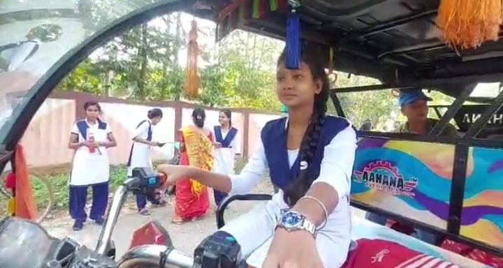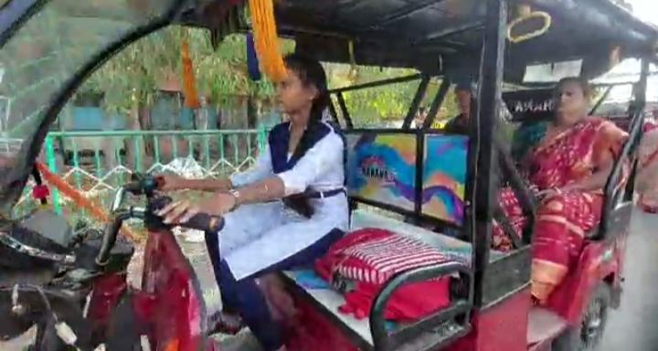 নিজেই টোটো চালিয়ে পরীক্ষা দিতে এলো কোলাঘাট গার্লস স্কুলের ছাত্রী দেবশ্রী খাঁড়া