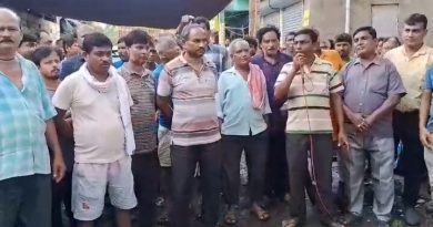 এলাকার মানুষের সাথে কথা বলেন শিশুকে কোলে নিয়ে আদর করেন দেবাংশু ভট্টাচার্য।