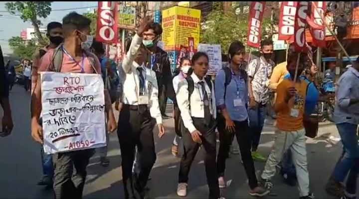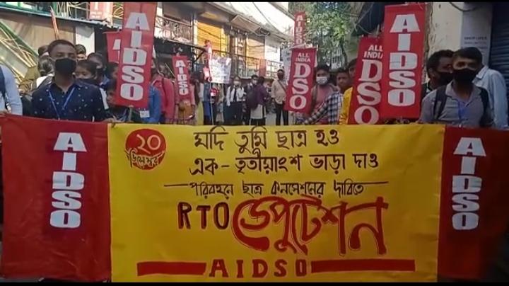 পড়ুয়াদের ভাড়া এক তৃতীয়াংশ করার দাবীতে মিছিল