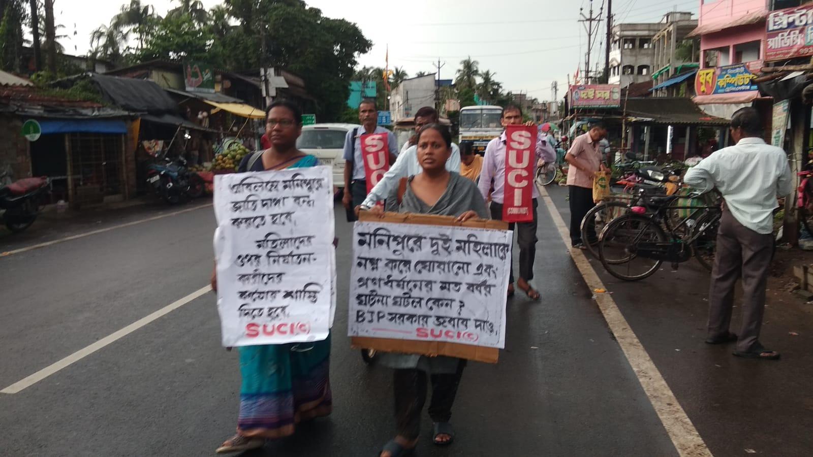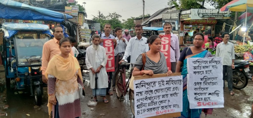 মনিপুরে দুই মহিলার উপর অত্যাচারের প্রতিবাদে,জাতি দাঙ্গা বন্ধের দাবিতে নিমতৌড়িতে এসইউসিআই (কমিউনিস্ট) দলের মিছিল