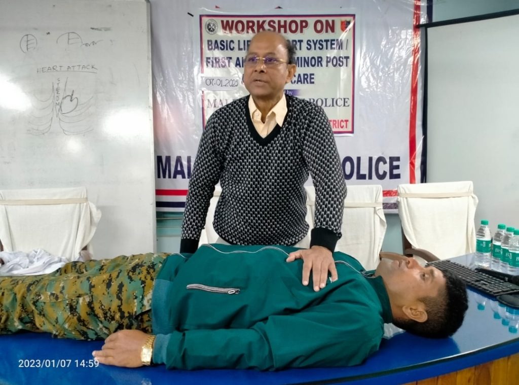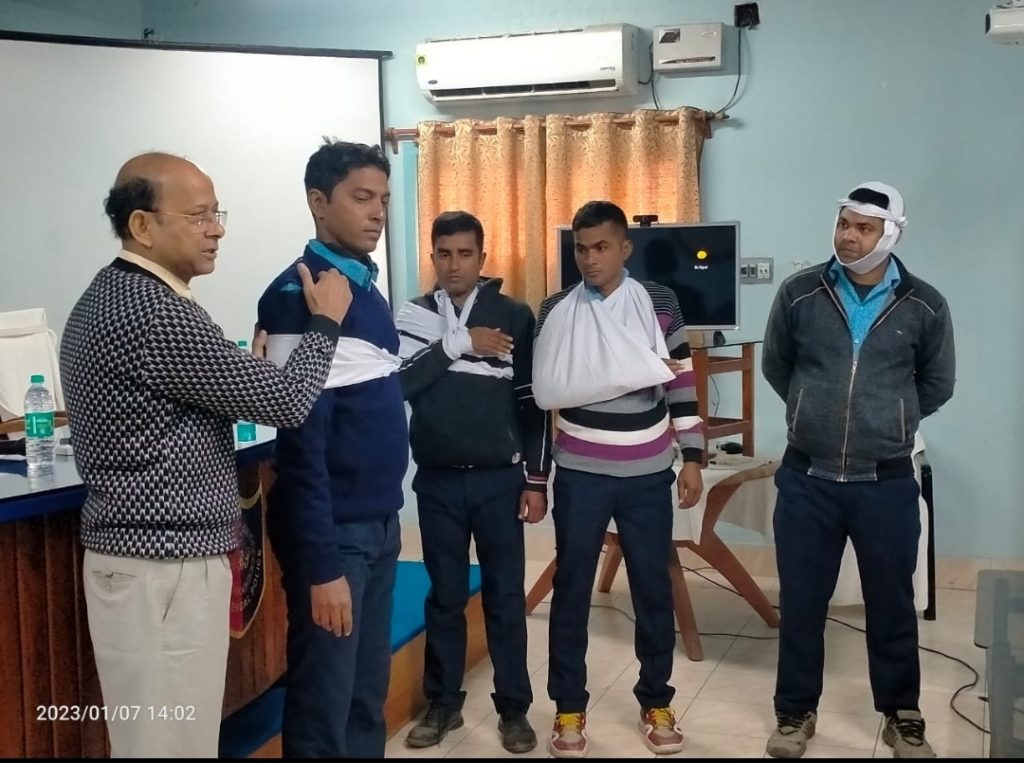 হঠাৎ করে অস্থি ভঙ্গ, রক্তক্ষরণ বা অসুস্থ হয়ে পড়লে হাসপাতাল বা চিকিৎসকের কাছে পৌঁছানোর পূর্বেই কিভাবে একজন পুলিশ কর্মী, অ্যাম্বুলেন্স ড্রাইভার রোগীকে পৌঁছে দিতে পারেন তা ব্যাখ্যা সহ প্যাকটিকাল করে দেখান হয়।