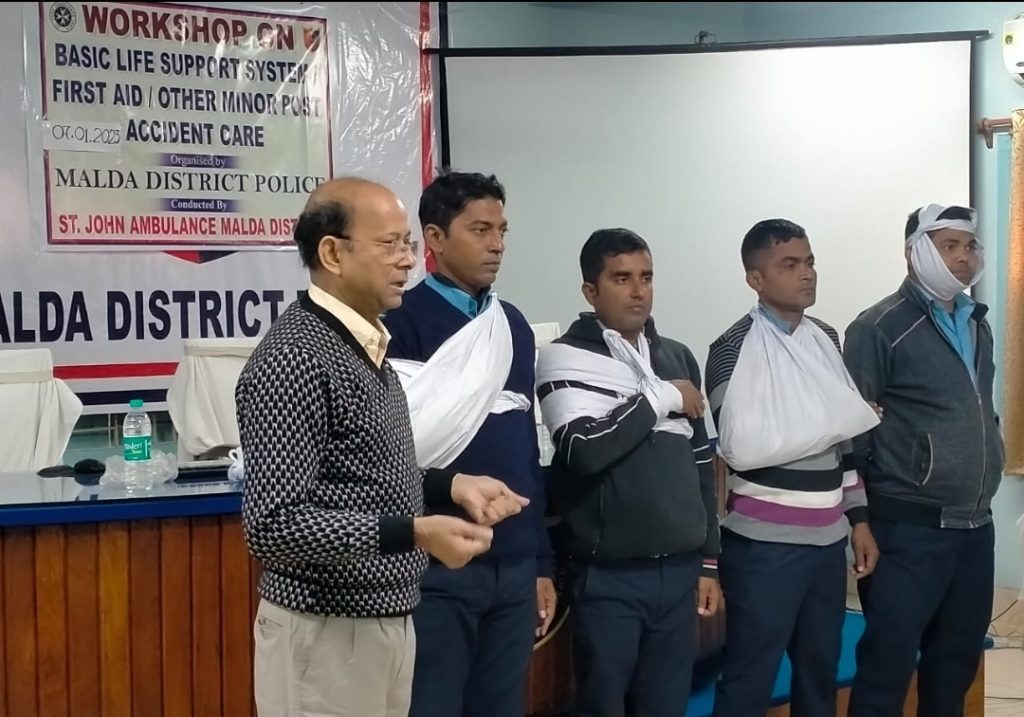 কর্মশালায় মালদা জেলার শতাধিক পুলিশ আধিকারিক, সিভিক ভলেন্টিয়ার, পথবন্ধু ও অ্যাম্বুলেন্স ড্রাইভার প্রশিক্ষণ নেন। প্রশিক্ষক হিসেবে উপস্থিত ছিলেন সেন্ট জন অ্যাম্বুলেন্সের লেকচারার অনিল কুমার সাহা ও সেন্ট জন অ্যাম্বুলেন্সের সমাজকর্মী সুরজিৎ মন্ডল।